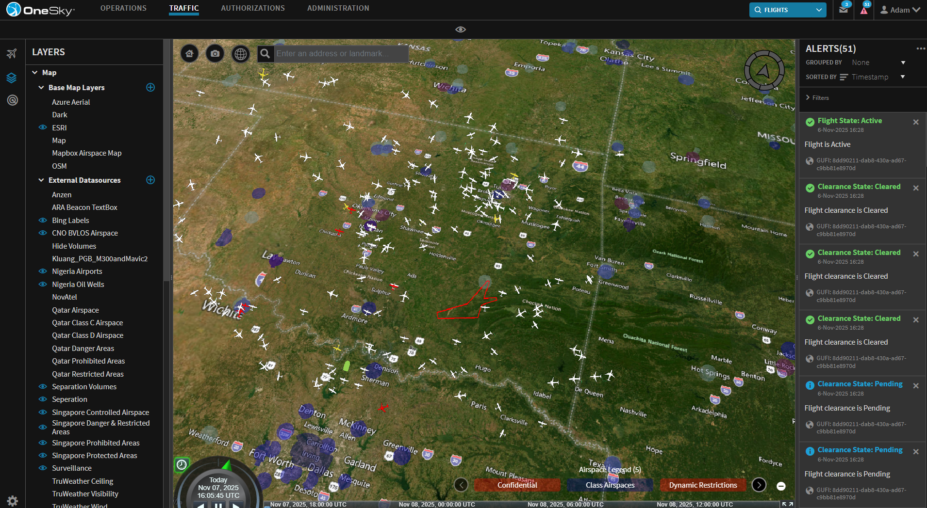 - Real-Time 4D Awareness: Fusion of FlightLine’s precise ADS-B data with OneSky’s simulation and decision-support tools for complete airspace visibility and deconfliction.
